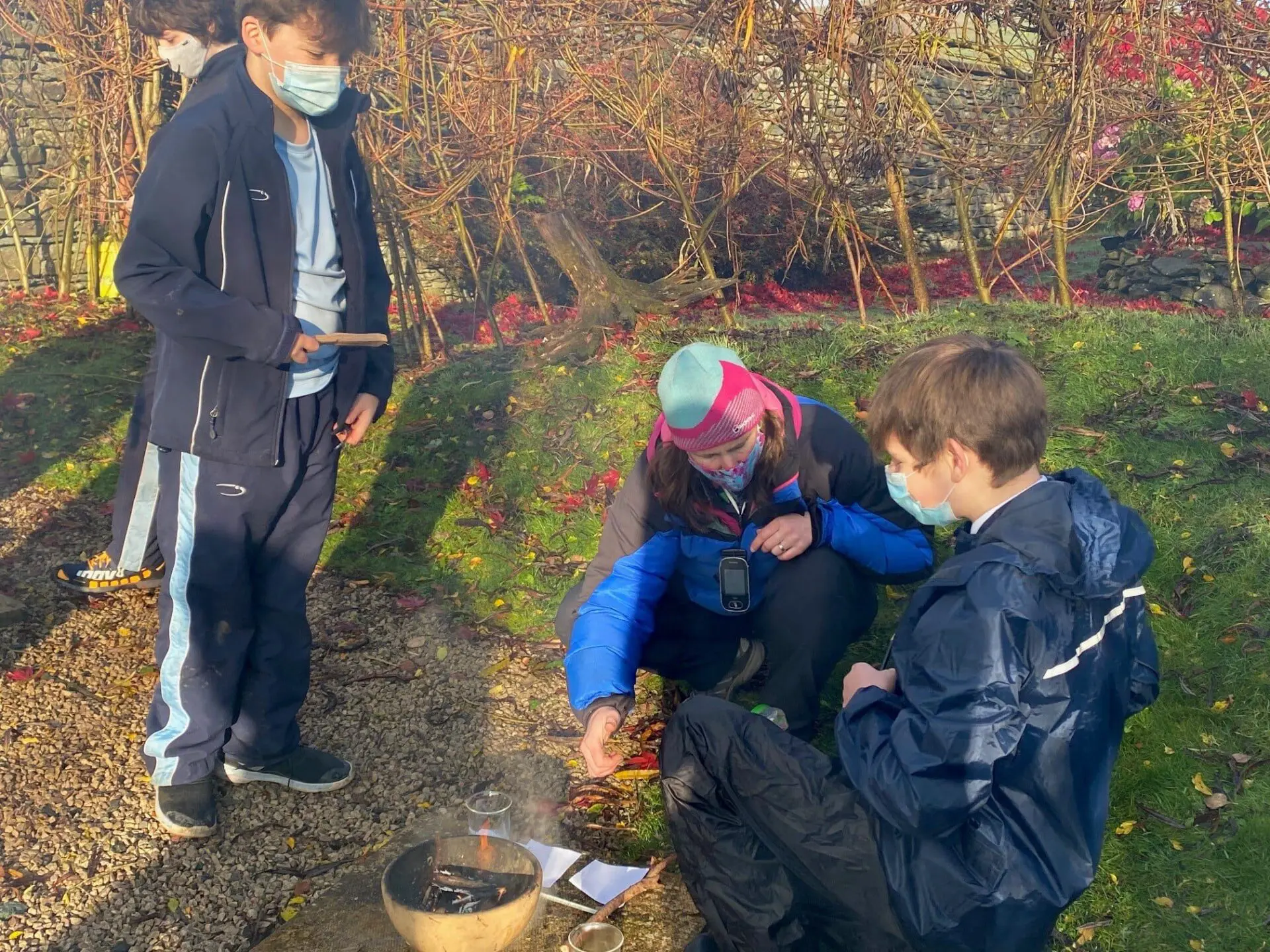 After lighting their own fires, students used thermometers to monitor water temperature whilst exploring the process of diffusion. Their aim was to establish how differing water temperatures affect the rate at which this occurs.