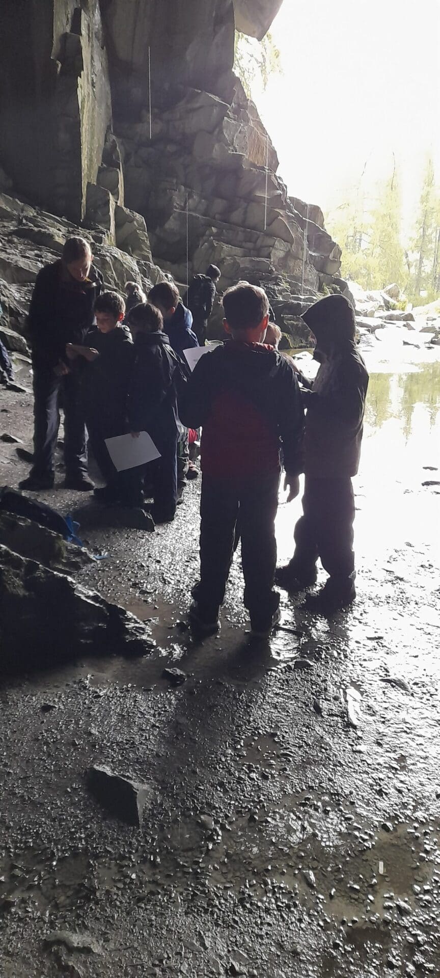 Last week Year 5 took their English lesson to the Langdale Valley to read the scariest chapter of their spooky class book, ‘Goth Girl’ in Rydal Caves. The class discussed what ‘wow words’, or adjectives are and noticed how all the descriptive words that they were reading in their book could be seen, smelt, felt and heard all around them in the caves. After hot chocolate and cookies, the class headed back into school where they wrote a piece of descriptive writing using their experiences as inspiration.